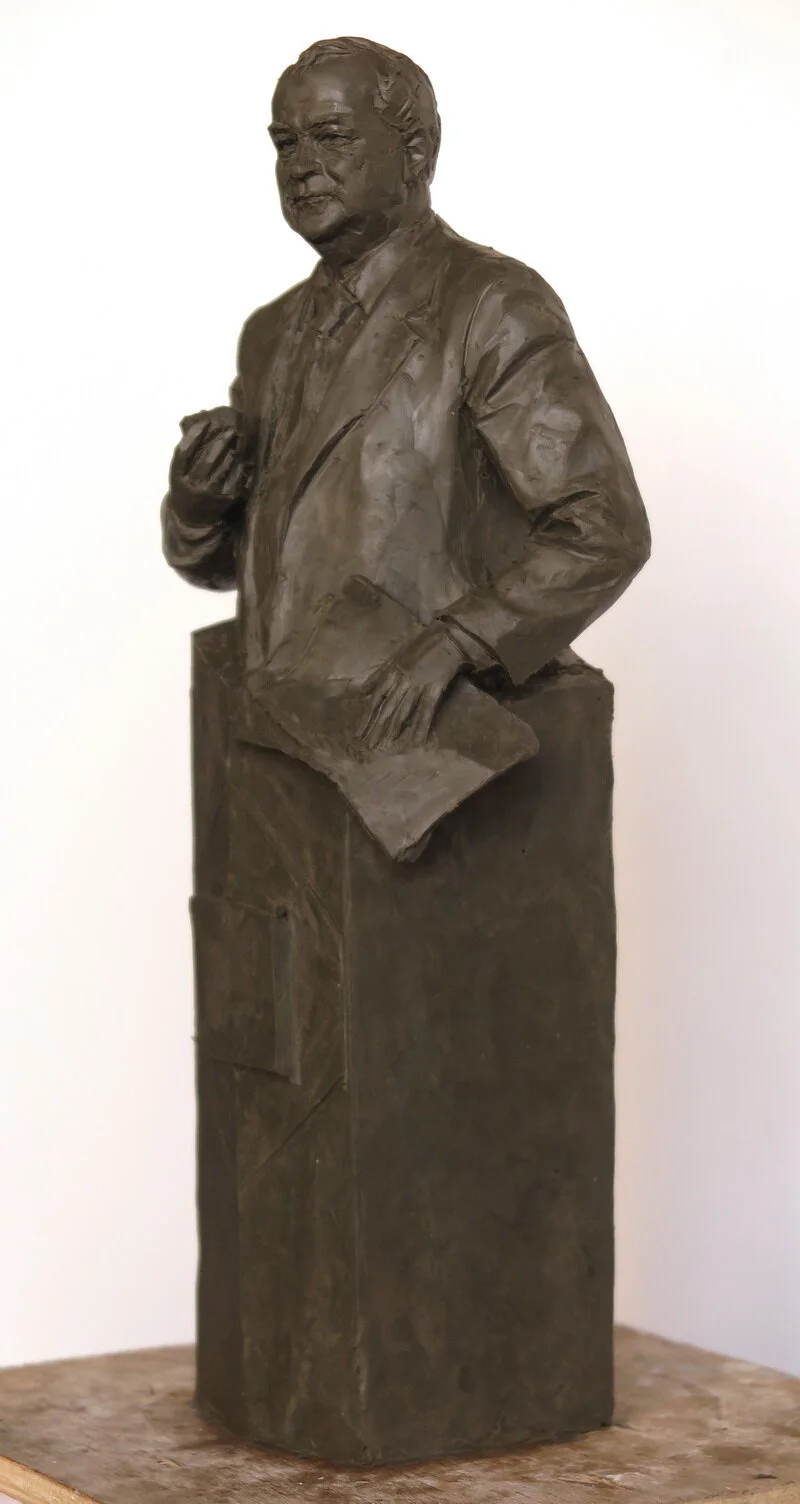 Эскиз композиции портретного бюста В.К. Христову в формате полуфигуры. Портретное сходство на этом этапе не прорабатывается, оценивается общая композиция, поворот фигуры и головы, направление взгляда, положение рук и наличие дополнительных предметов, раскрывающих характер человека и дополняющих художественную композицию.